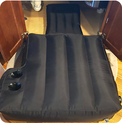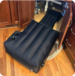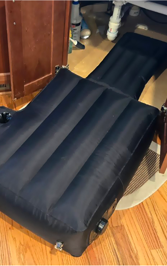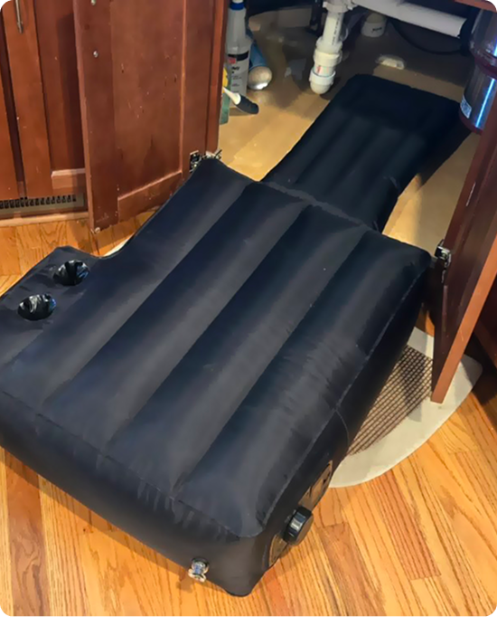 The first inflatable cabinet creeper on the market. Enjoy the ease of quickly inflating your work space for sink plumbing in one minute, and the comfort of laying on a flat comfortable surface for a change! Saves back pain, time and money “we’ve got your back!”